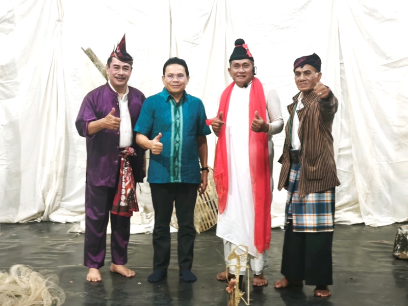 SURABAYA: Dr. Restu Gunawan, M.Hum, Dirjen Pelindungan Kebudayaan dan Tradisi Kementerian Kebudayaan RI, tiba-tiba digaet ikut bergabung dalam pentas ludruk garingan Besut Jajah Milangkori, Sabtu malam (4/4/26). Maka terjadilah dialog improvisasi yang justru menjadikan pertunjukan berlangsung cair dan akrab.